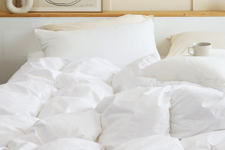 바스락거리는 재질의 새하얀 구스 이불이 호텔 이불을 연상시키거든요!